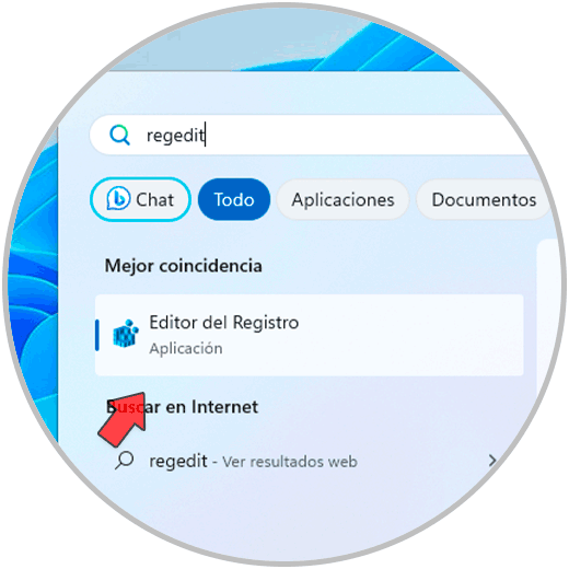 Para ello en el buscador vamos a ingresar la palabra “regedit” y luego daremos clic en el Editor de registros:
