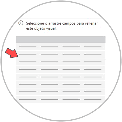 Ahora, veremos que se ha creado en el tablero una tabla vacía, y que se irá completando a continuación cuando según seleccionemos los campos que queremos poner en la tabla.