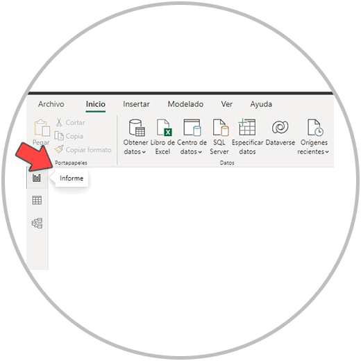 Para realizar la segmentación de datos en Power BI, así como para crear cualquier tabla, gráfico, u otras opciones de visualización, tenemos que ir a la vista de “Informe”.