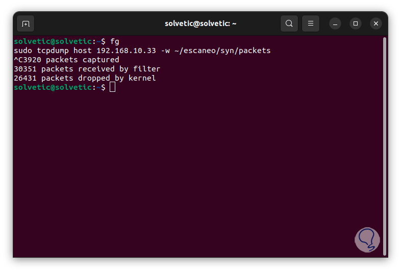 Por defecto tcpdump se ejecutará en primer plano, si no se requiere esto podemos pausar este proceso con las teclas siguientes: