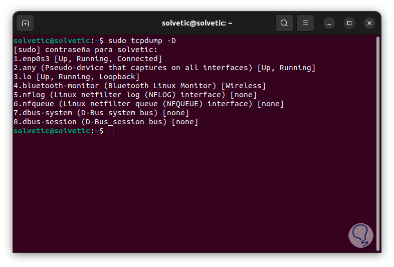 Algunas otras opciones para usar tcpdump son las siguientes. Para ver una lista de dispositivos donde podremos capturar datos usamos el comando: