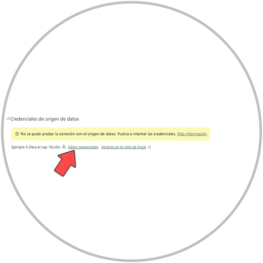 Para solucionarlo vamos a configurar “las credenciales de origen de datos”, haciendo clic en “editar credenciales”.