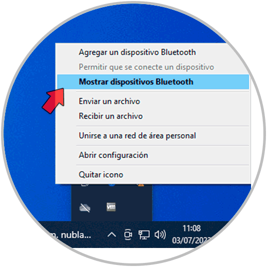 En este punto ya estaremos listos para usar el Bluetooth, es posible ver el icono de Bluetooth en la barra de tareas para tener acceso a sus opciones: