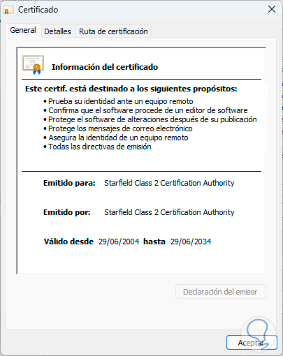 Allí vemos los datos que te menciono Solvetic acerca de la composición del certificado.