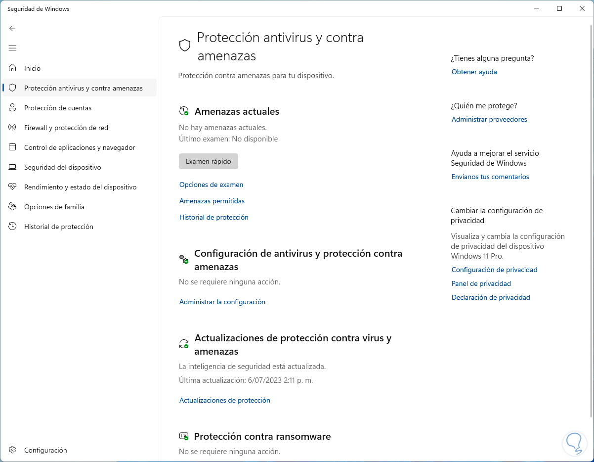 Podemos trabajar directamente en la utilidad Seguridad de Windows.