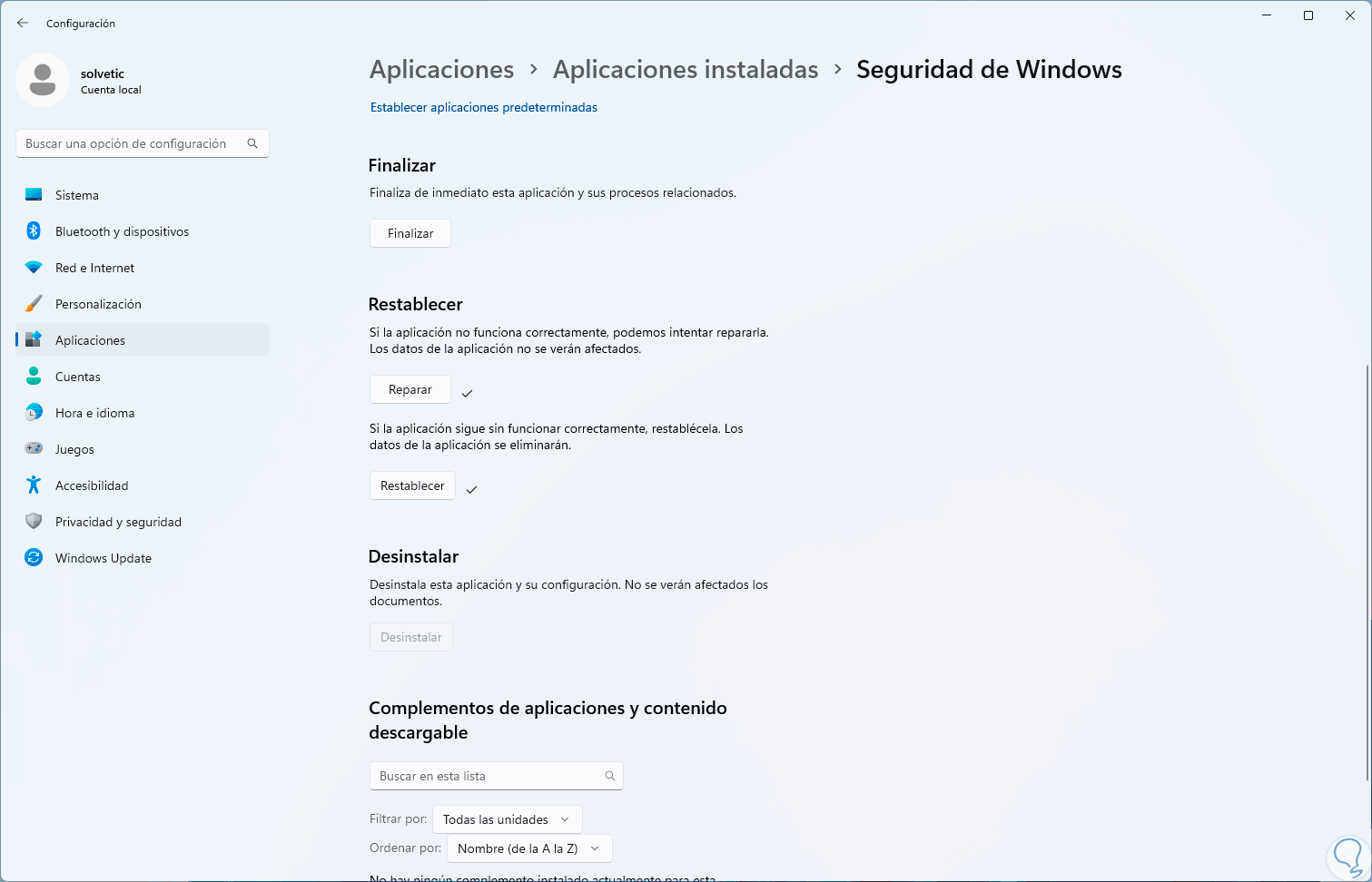 2 Reparar Windows Defender en Windows 11 desde Configuración