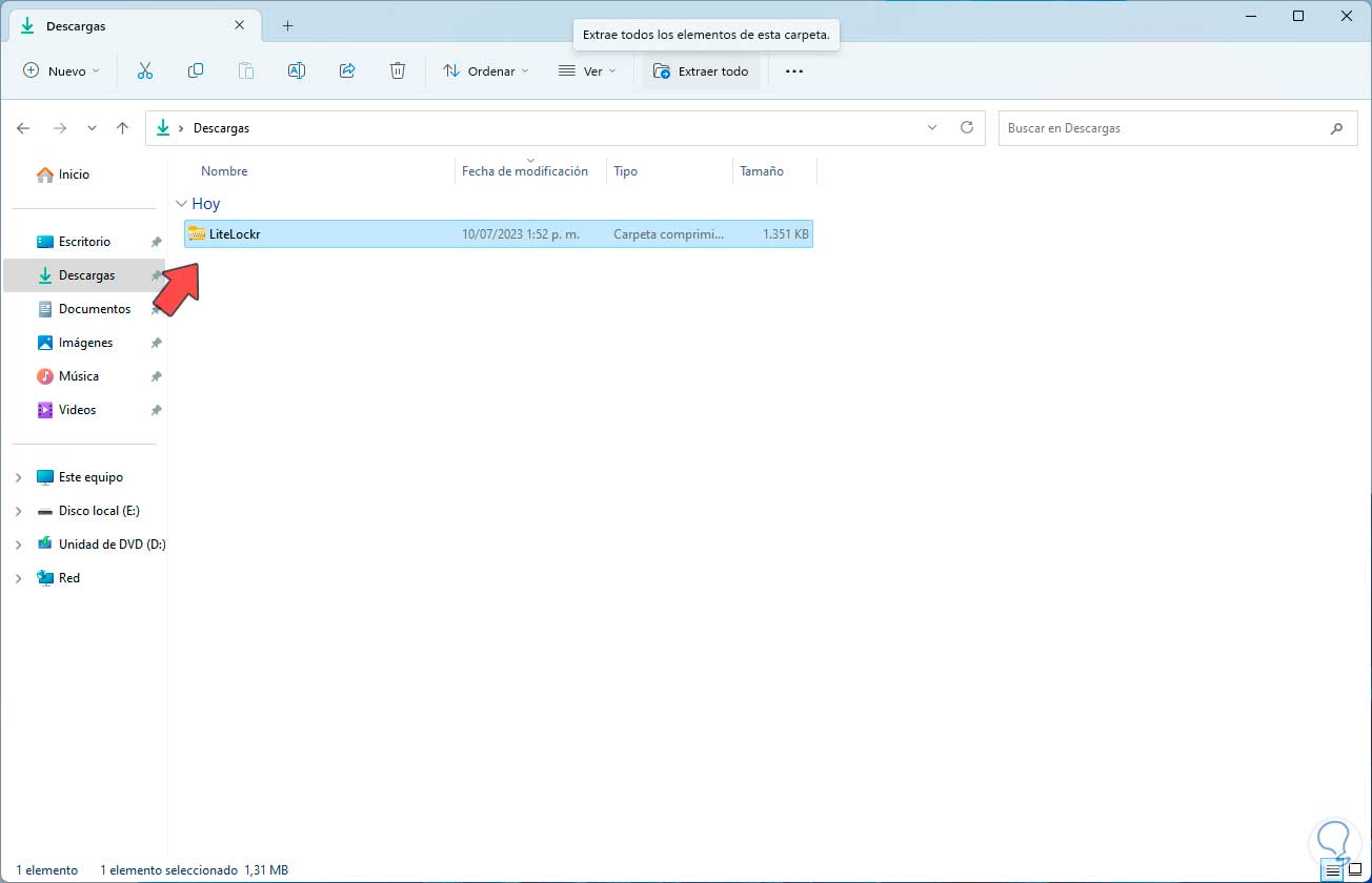 Descargamos el archivo, luego iremos a la carpeta de descargas y extraemos el archivo: