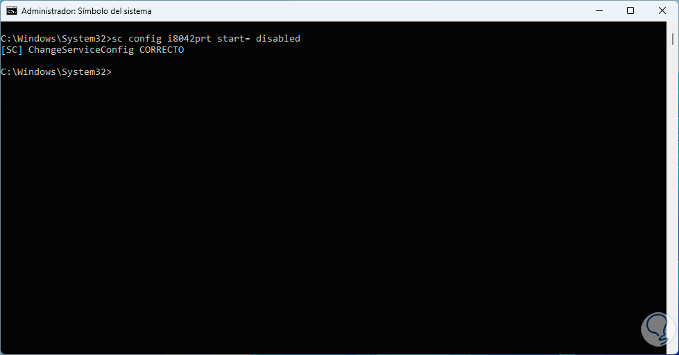 El puerto por defecto en Windows para el teclado es el 8042, este método en la consola hará que el proceso de bloqueo sea permanente. Ahora vamos a reiniciar Windows para que se aplique este cambio: