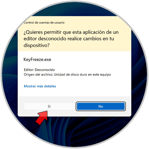 Allí vamos a dar clic en "Lock Keyboard & Mouse" y debemos aceptar los permisos de Windows: