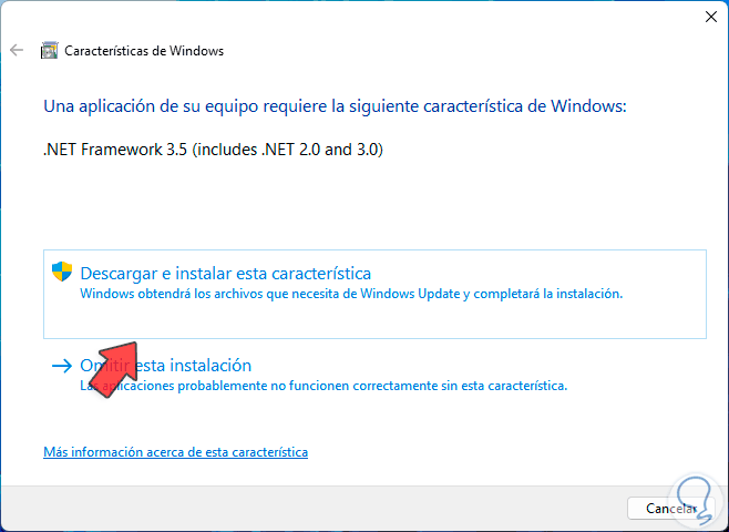 Este es un complemento necesario para que la utilidad funcione, damos clic en “Descargar e instalar esta característica” para que se inicie la búsqueda de los archivos: