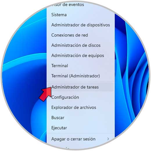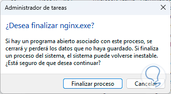 En caso que necesitemos finalizar el servicio de Nginx, vamos a abrir el Administrador de tareas desde el menú Inicio: