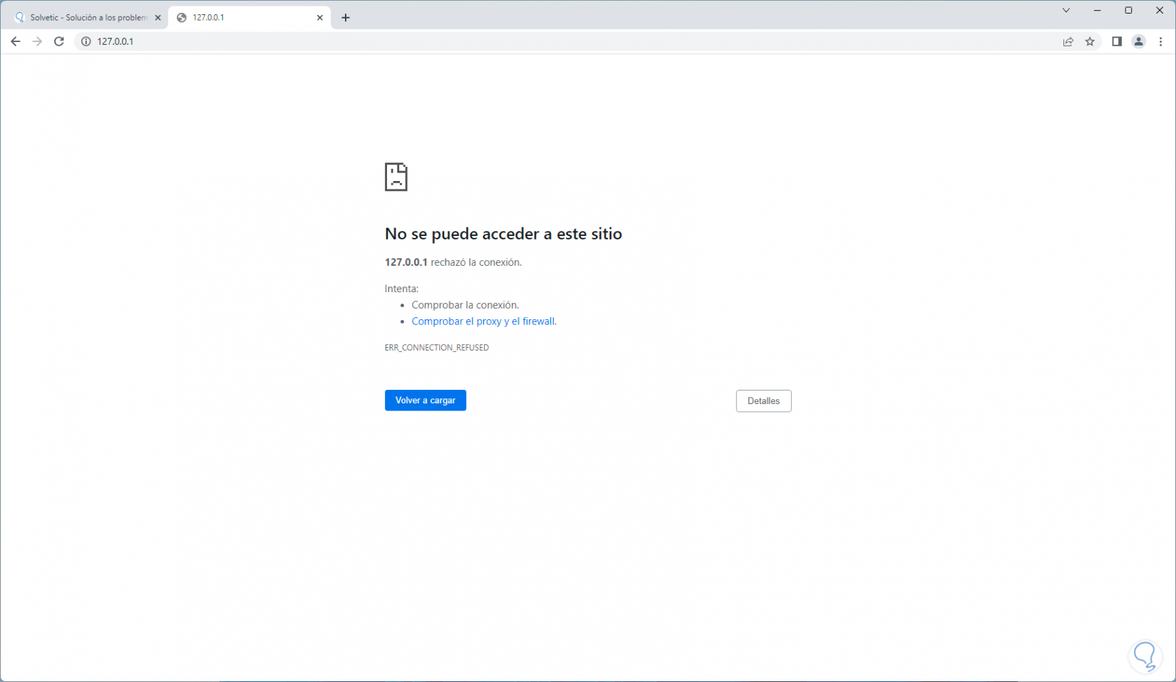Si vamos al navegador y actualizamos la página podremos ver el error de conexión: