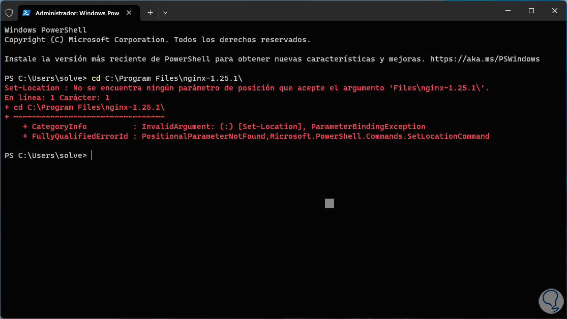 En la consola de PowerShell vamos a esa ruta usando el comando “cd” pero es posible ver lo siguiente: