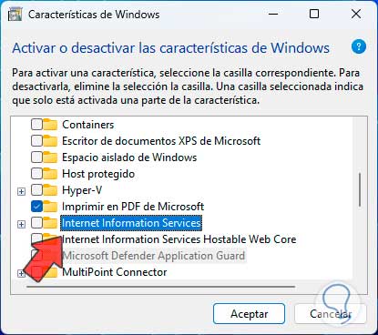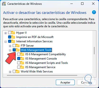 Damos clic en el signo + y activamos su casilla y las casillas necesarias en “Web Management Tools”: