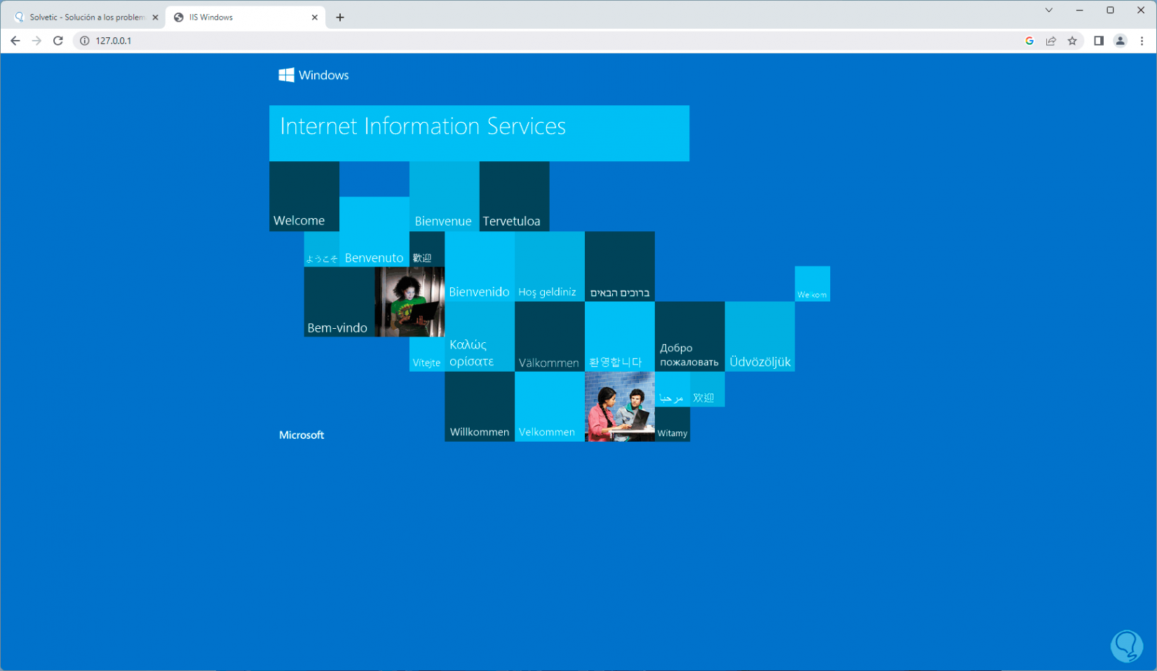 Abrimos el navegador y al actualizar la página podemos ver la ventana de IIS: