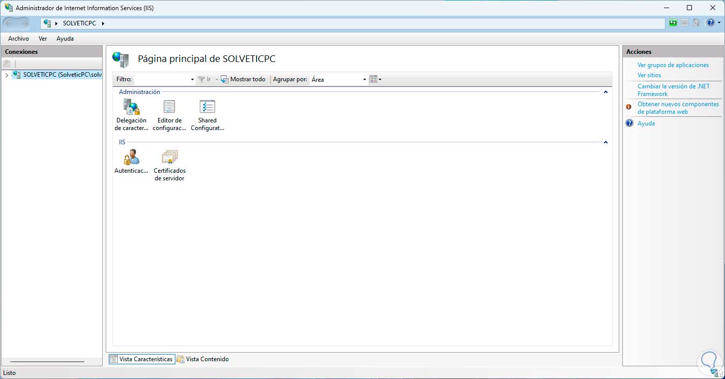 Damos clic sobre “Administrador de Internet Information Services” para abrir la consola: