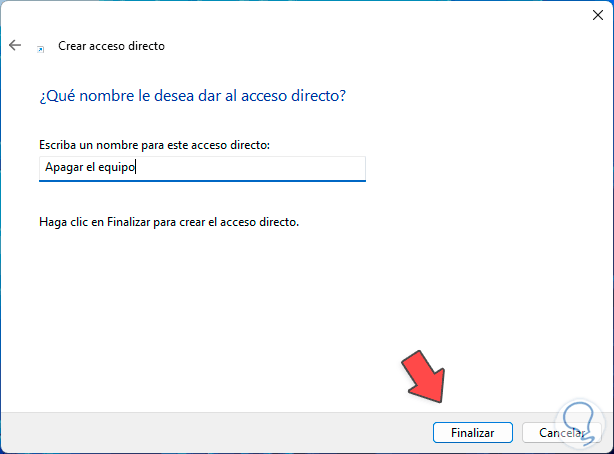 Damos clic en “Finalizar” y el acceso directo estará creado: