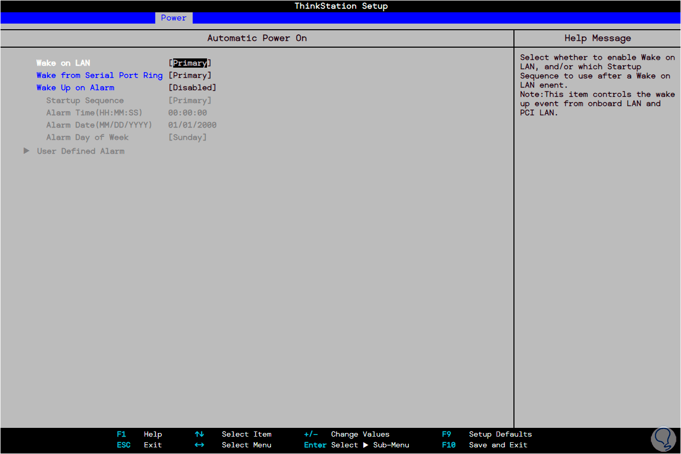 Otro método es acceder al BIOS o UEFI del equipo y validar el estado de WakeOnLan el cual nos permite el apagado o reinicio remoto, al acceder al BIOS ve a la sección “Power”: