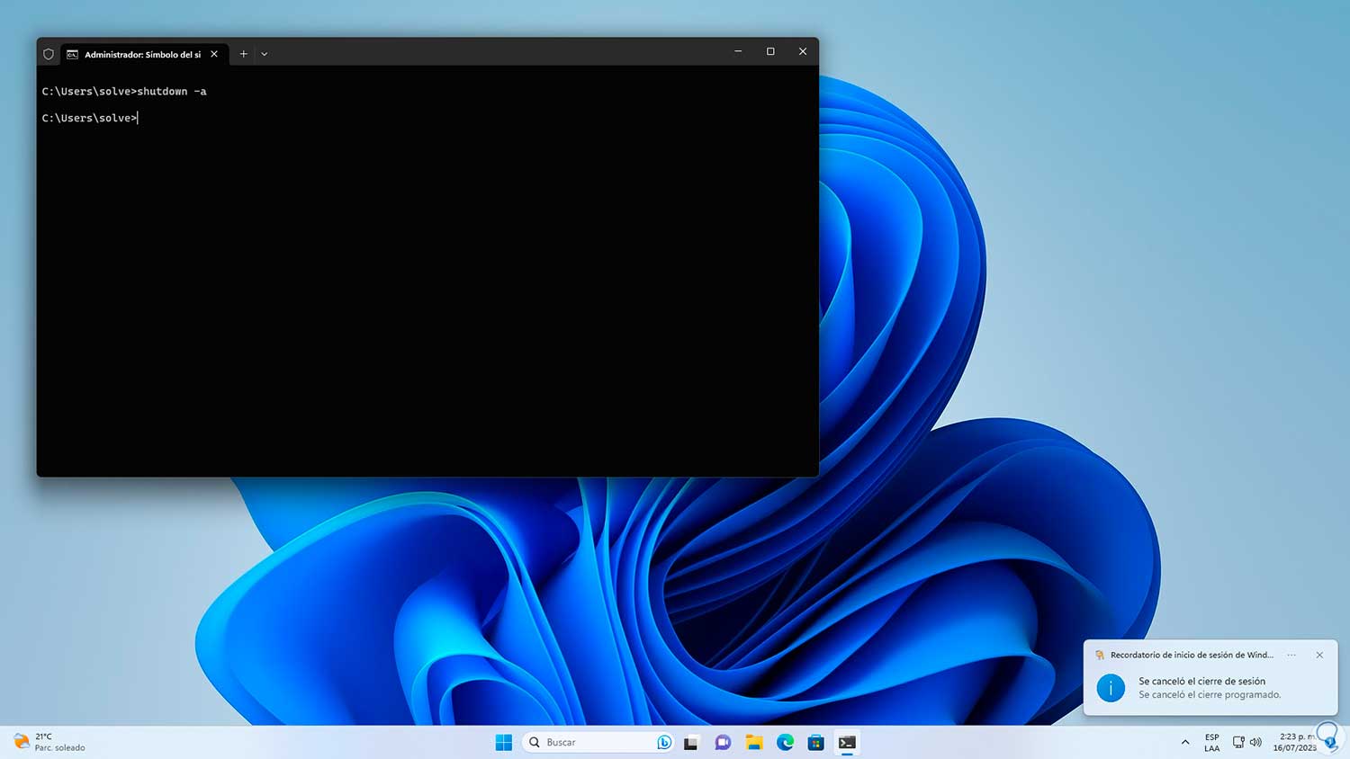 Para cancelar el apagado vamos a ejecutar el siguiente comando: