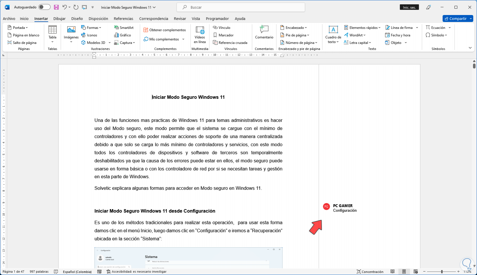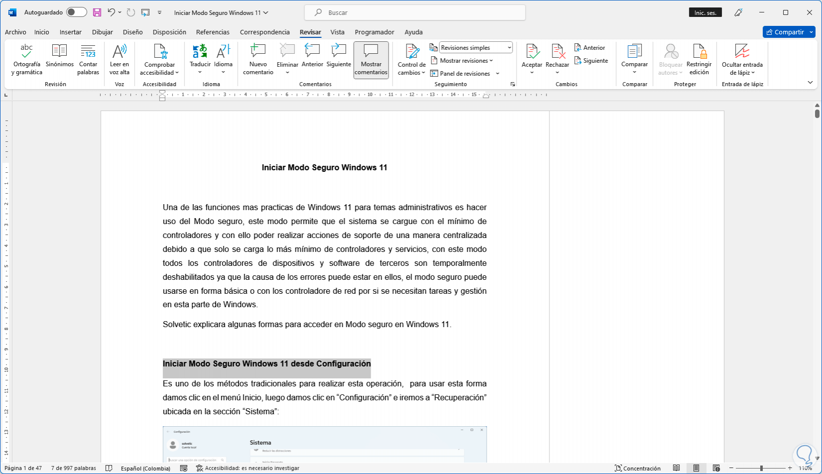 Para iniciar abrimos Word y podremos ver los comentarios del documento: