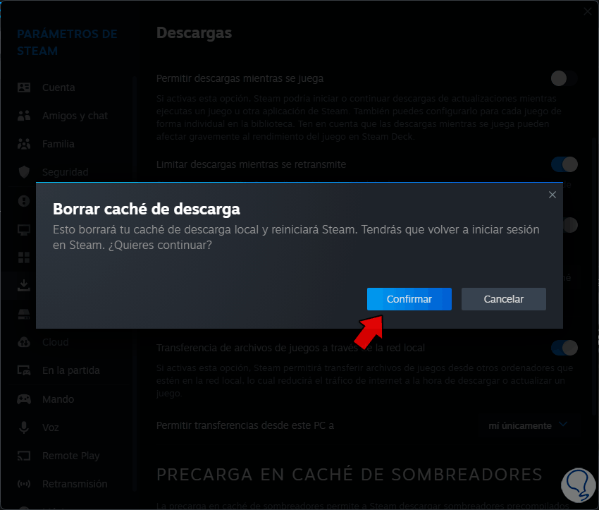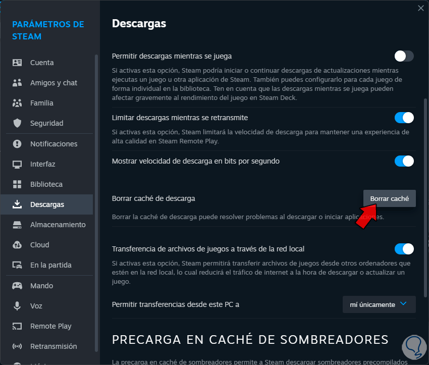 7 Borrar caché de Steam