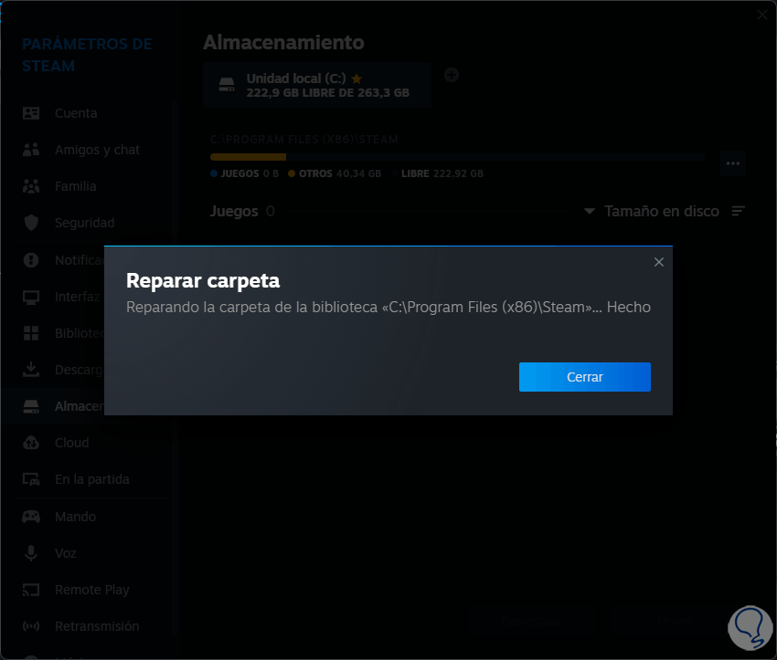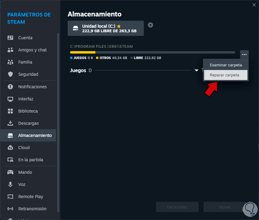 3 Reparar librería de Steam