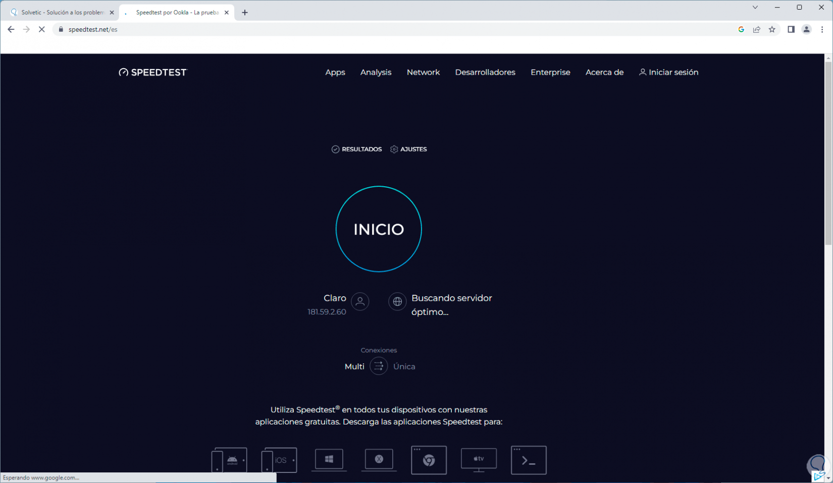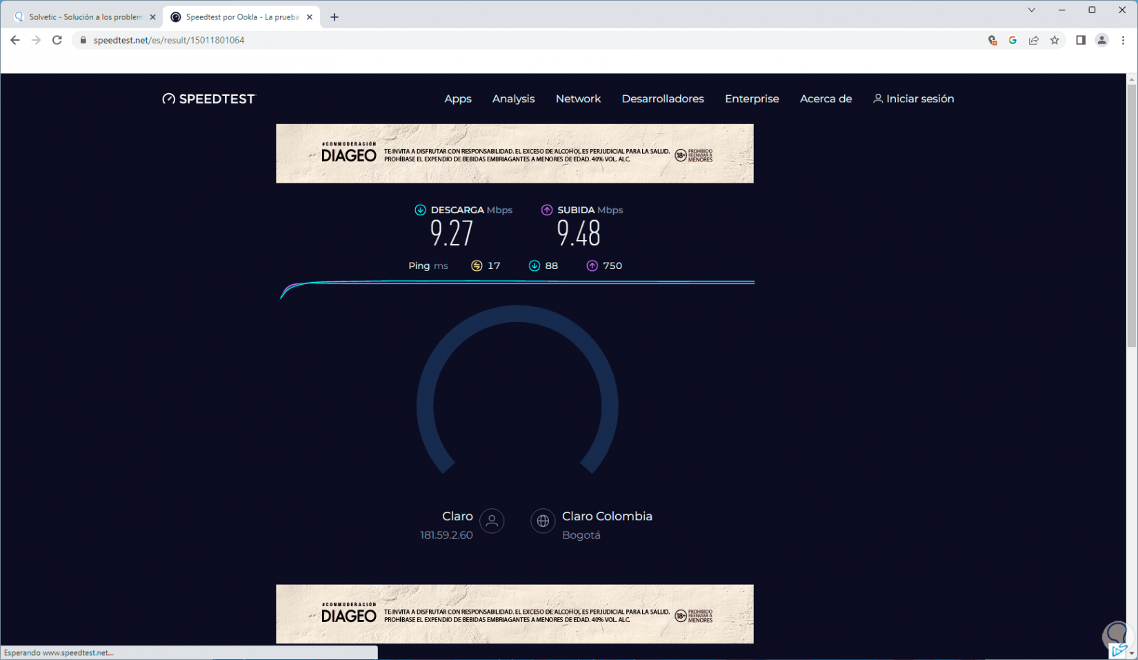 Esto nos dará información precisa sobre la velocidad de subida y bajada así como de otros aspectos de la red: