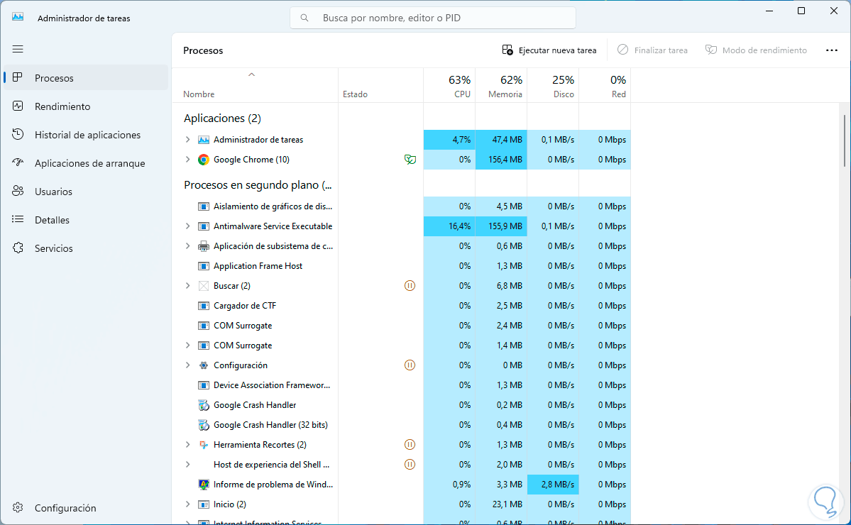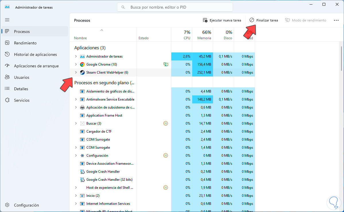 En la consola del Administrador de tareas vamos a seleccionar la línea de Steam: