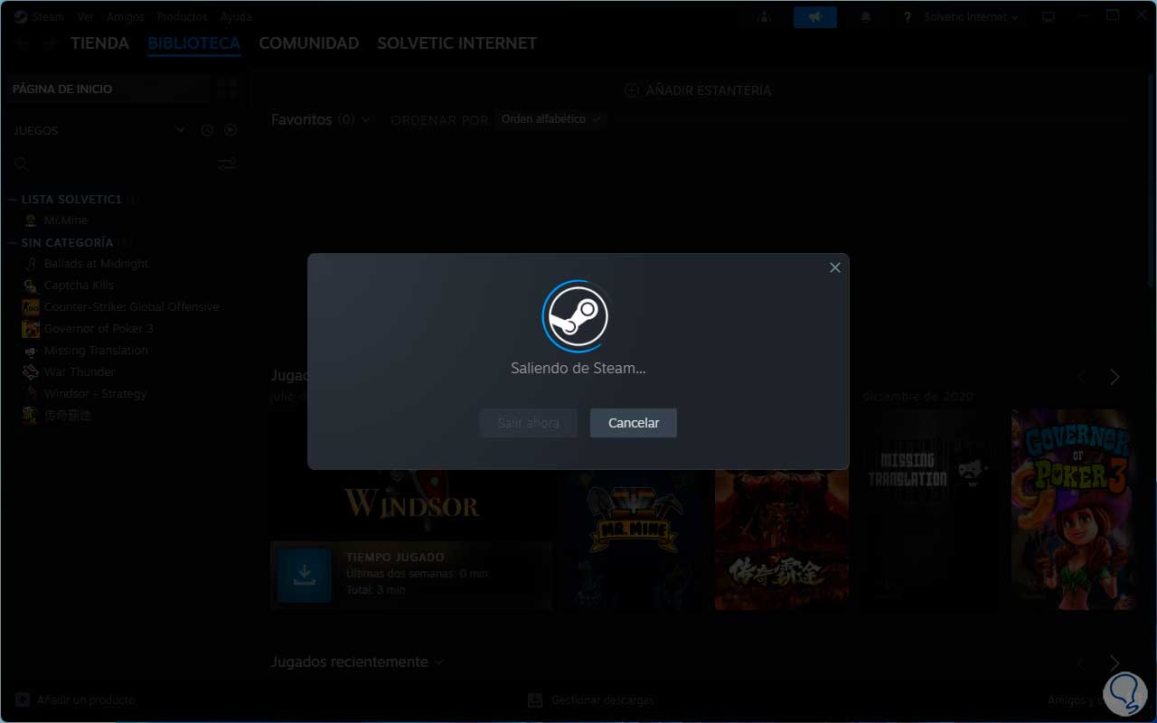 Luego Steam se abrirá sin problema: