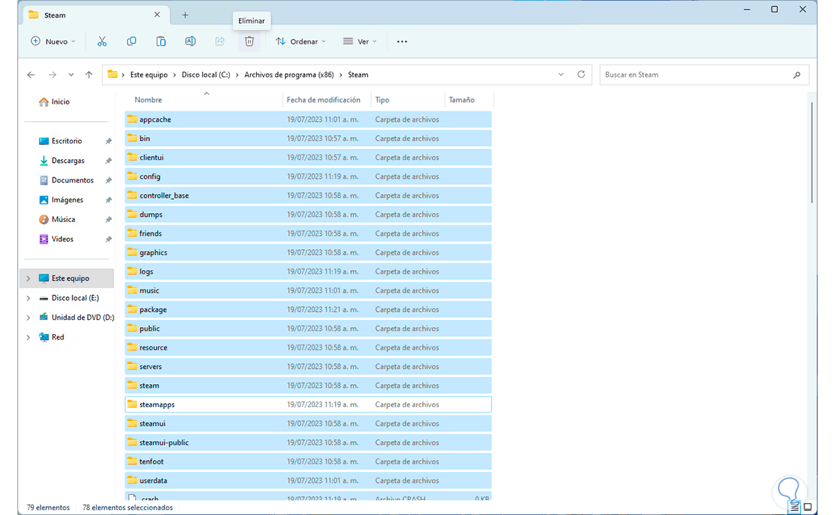 5 Borrar archivos de Steam