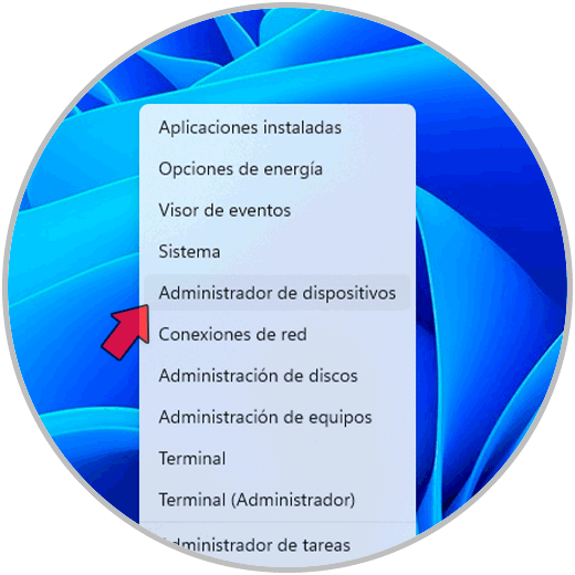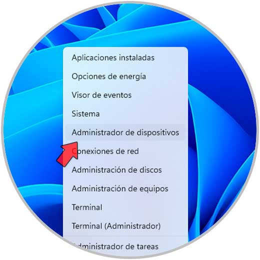 El fin de este método es instalar el controlador por defecto desarrollado por Microsoft ya que la causa puede ser un error mas complejo en el controlador actual, para usar este método vamos a abrir el Administrador de dispositivos desde el menú Inicio: