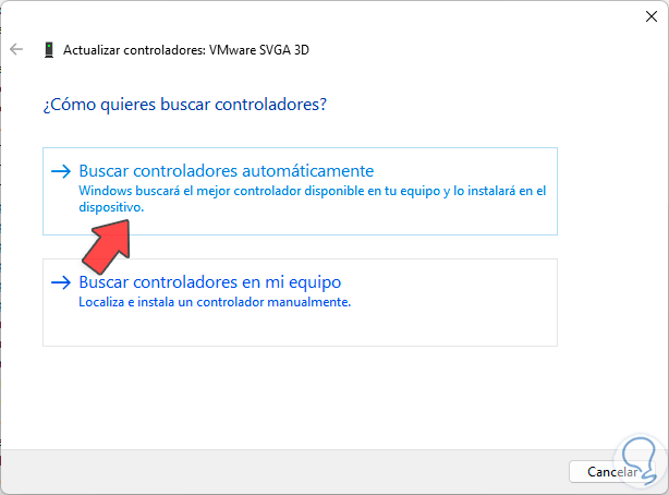 Ahora damos clic en la opción “Buscar controladores automáticamente” y esperamos que finalice este proceso: