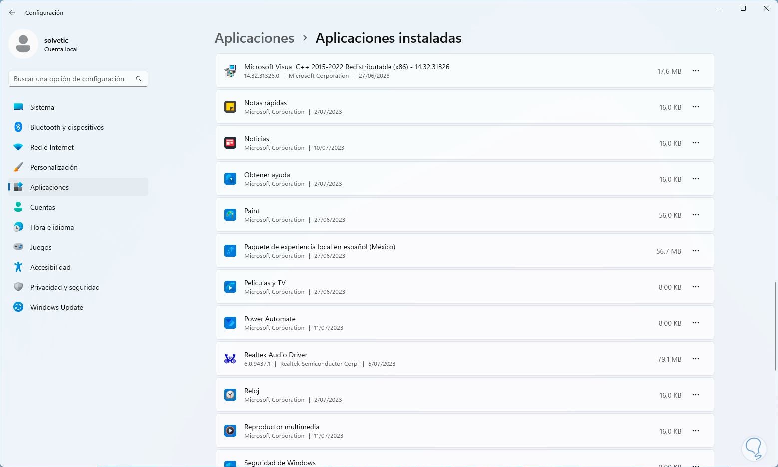 Para ello iremos a la ruta “Inicio – Configuración – Aplicaciones - Aplicaciones instaladas”:
