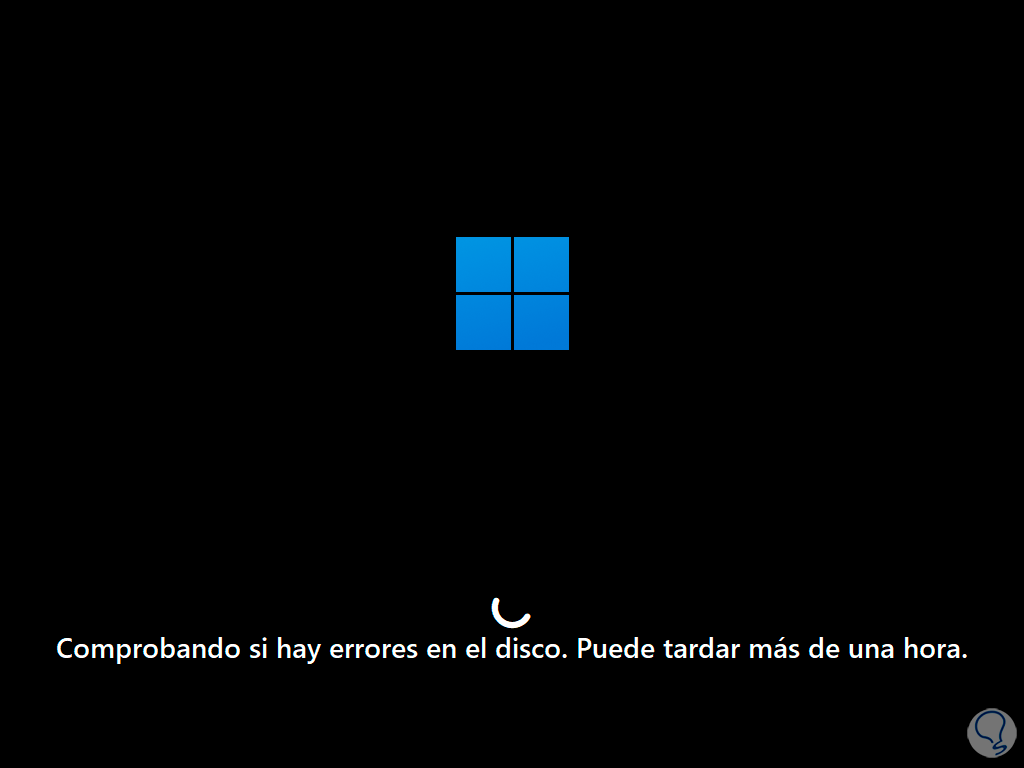 Podemos ver que se hará un análisis del disco duro en busca de algún error que genere el bucle de reinicio: