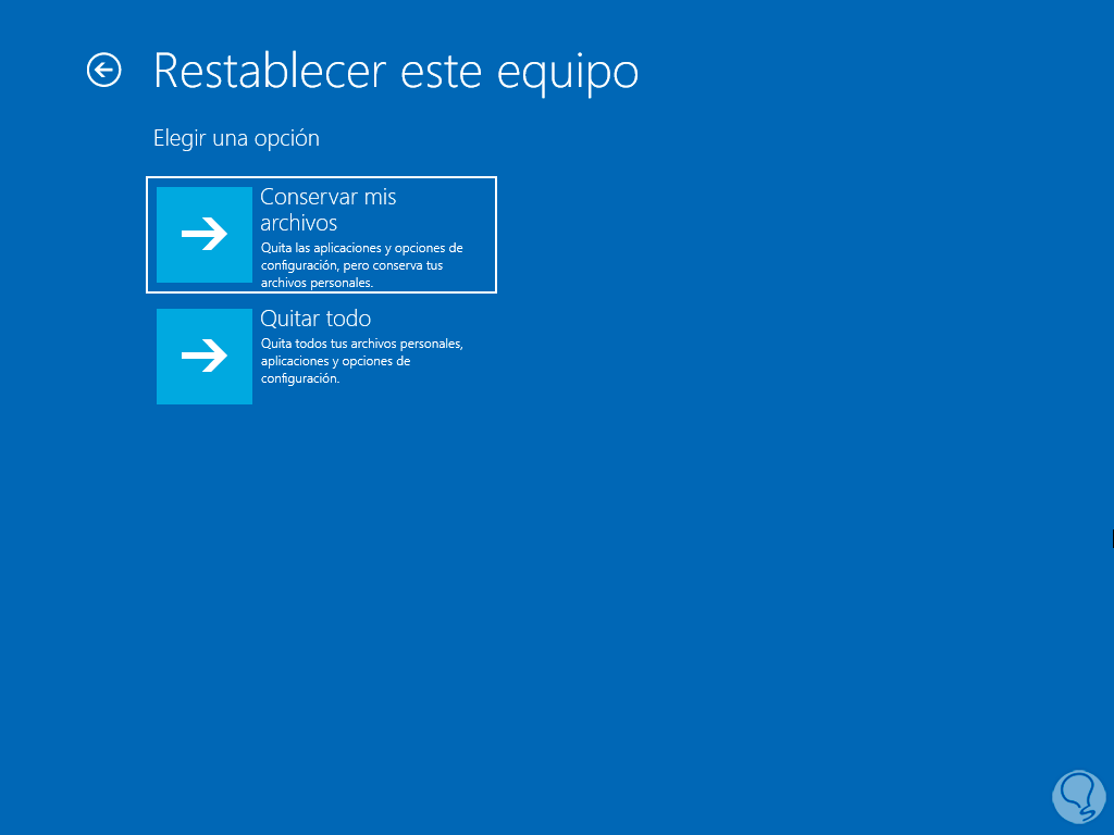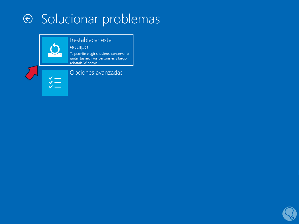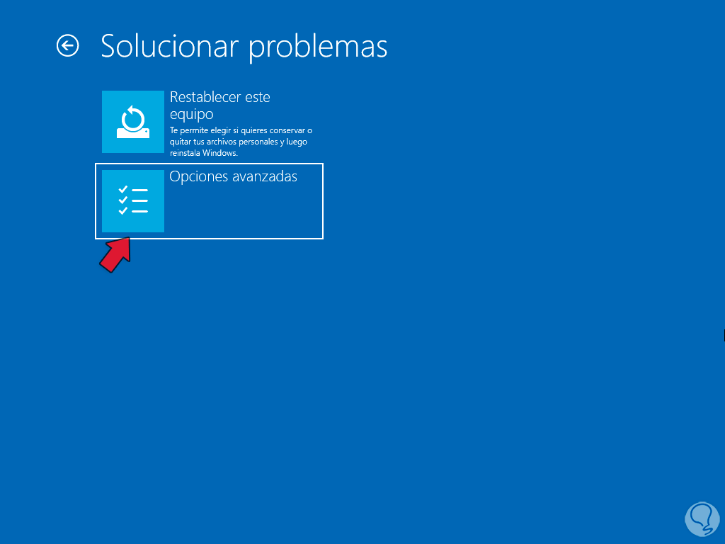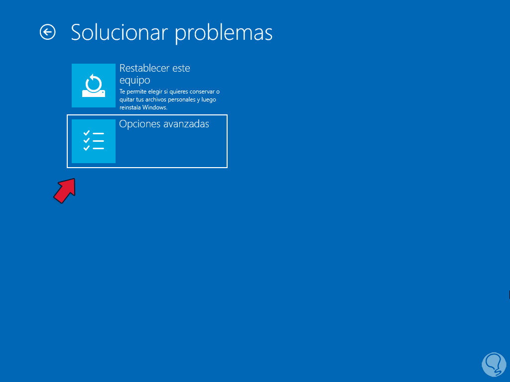 Al ser iniciado en modo avanzado daremos clic en “Solucionar problemas”: