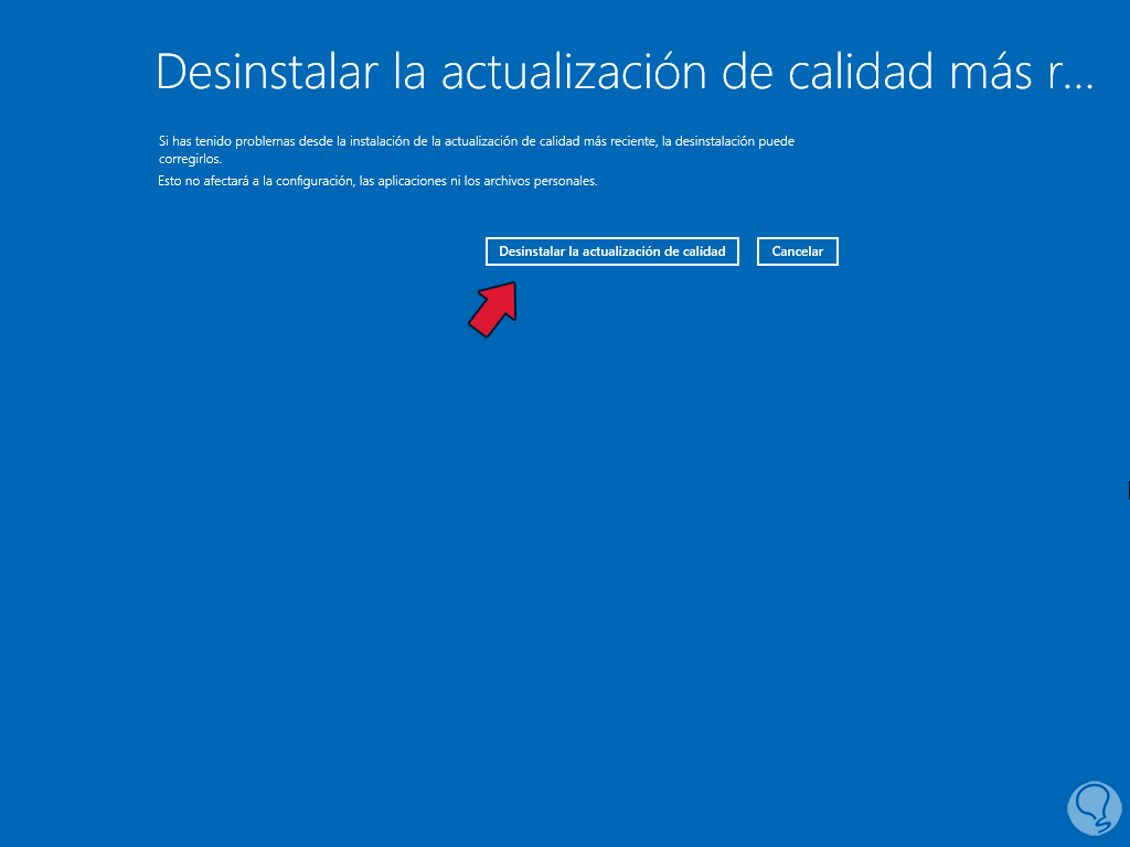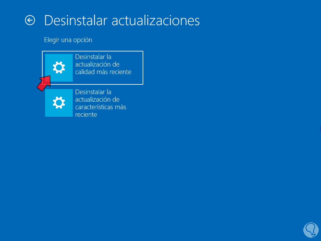 Vamos a seleccionar el tipo de actualización a desinstalar: