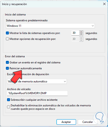 6 Solucionar Bucle de reinicio Windows 11 desactivando el reinicio automático