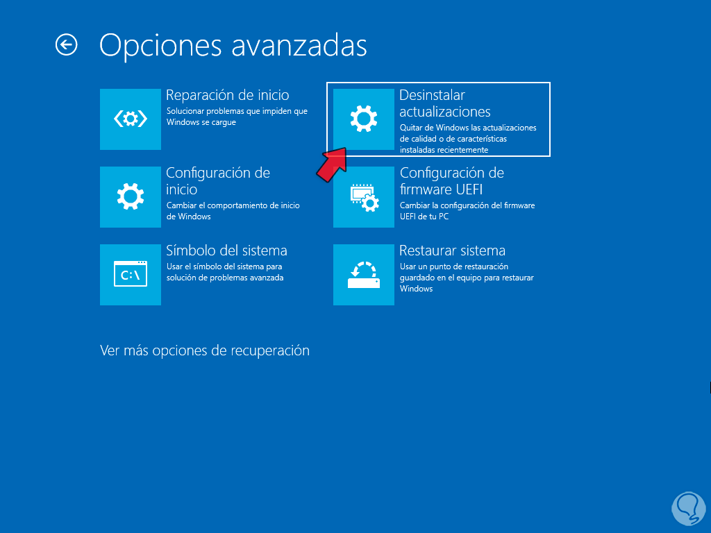 Ahora vamos a trabajar en algunas opciones extras para corregir el error, en este caso vamos a dar clic en “Desinstalar actualizaciones”: