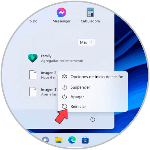 En caso de que el sistema esté lento o siga el error, vamos a dar clic en el menú “Inicio”, luego damos clic en el botón de apagado, pulsamos la tecla Ctrl y damos clic en “Reiniciar”: