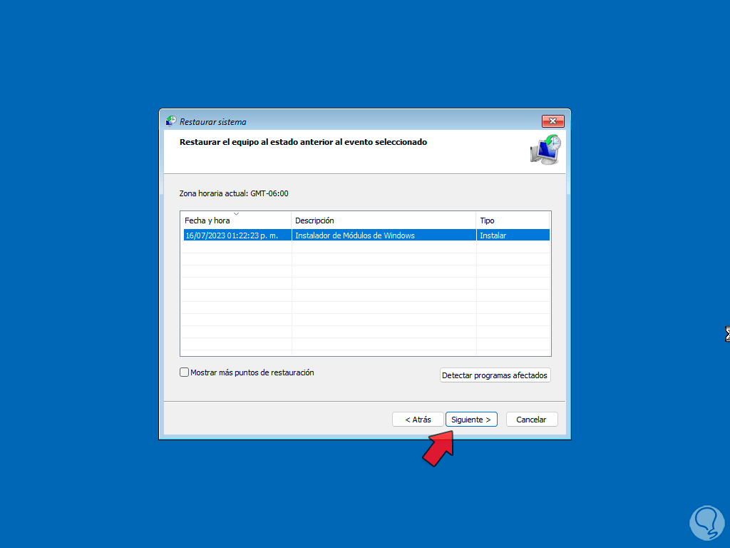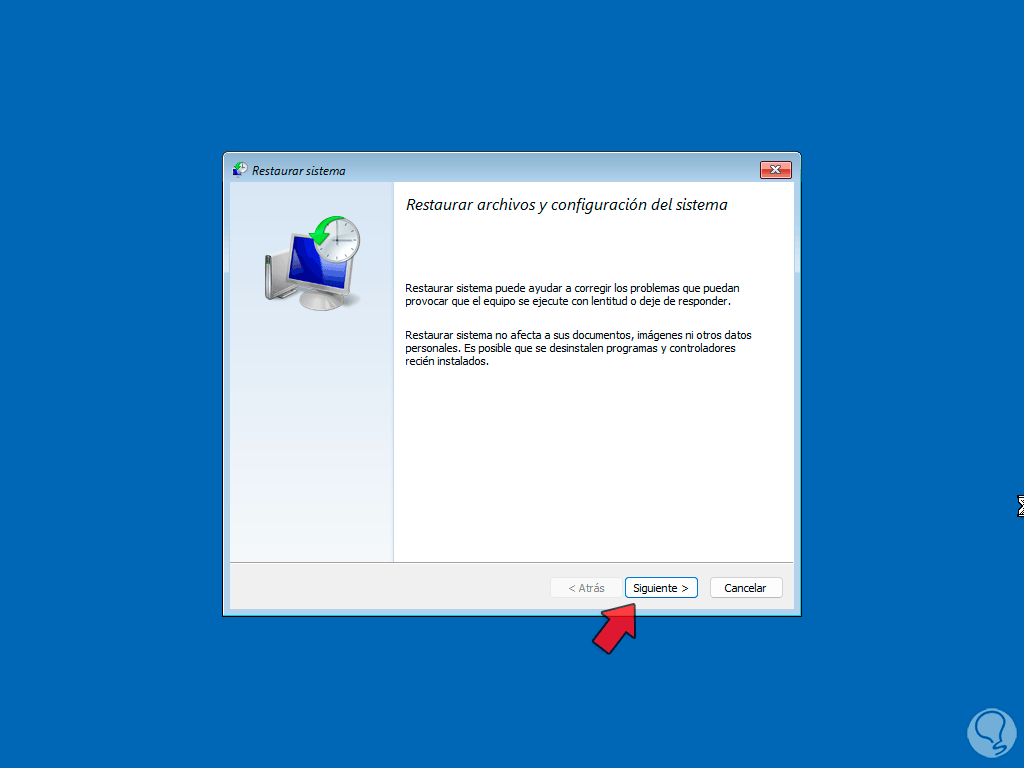 Otra opción a usar es desde el menú principal dar clic en la opción “Restaurar sistema”:
