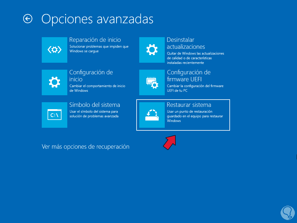 Ahora tendremos acceso a las diversas opciones avanzadas de Windows: