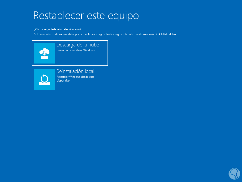 Al acceder allí veremos lo siguiente. Allí damos clic en “Reiniciar ahora” y veremos el siguiente mensaje: