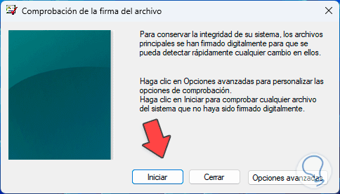 Este comando nos permite verificar las firmas digitales de los archivos ejecutables en Windows 11, esto nos da la seguridad que los archivos no han sido modificados ni manipulados afectando la seguridad del sistema y de los datos, al ejecutar este archivo veremos el siguiente asistente: