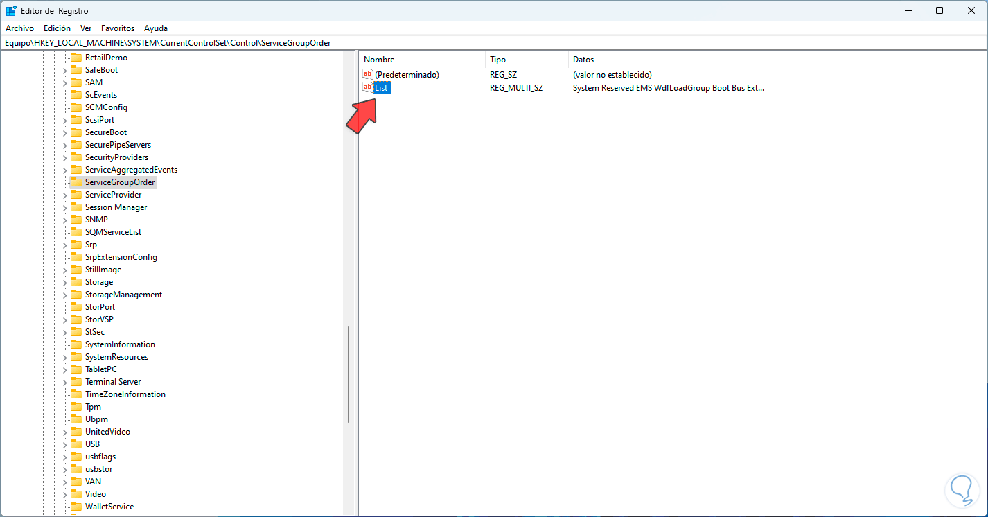 HKEY_LOCAL_MACHINE\SYSTEM\CurrentControlSet\Control\ServiceGroupOrder