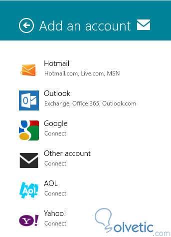 4- Esto nos va a desplegar una pantalla donde podremos configurar las diferentes cuentas disponibles, cada proveedor tiene algunas medidas de seguridad adicionales como por ejemplo Gmail que nos va a solicitar una autorización: