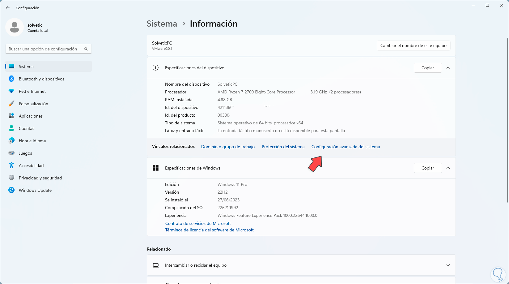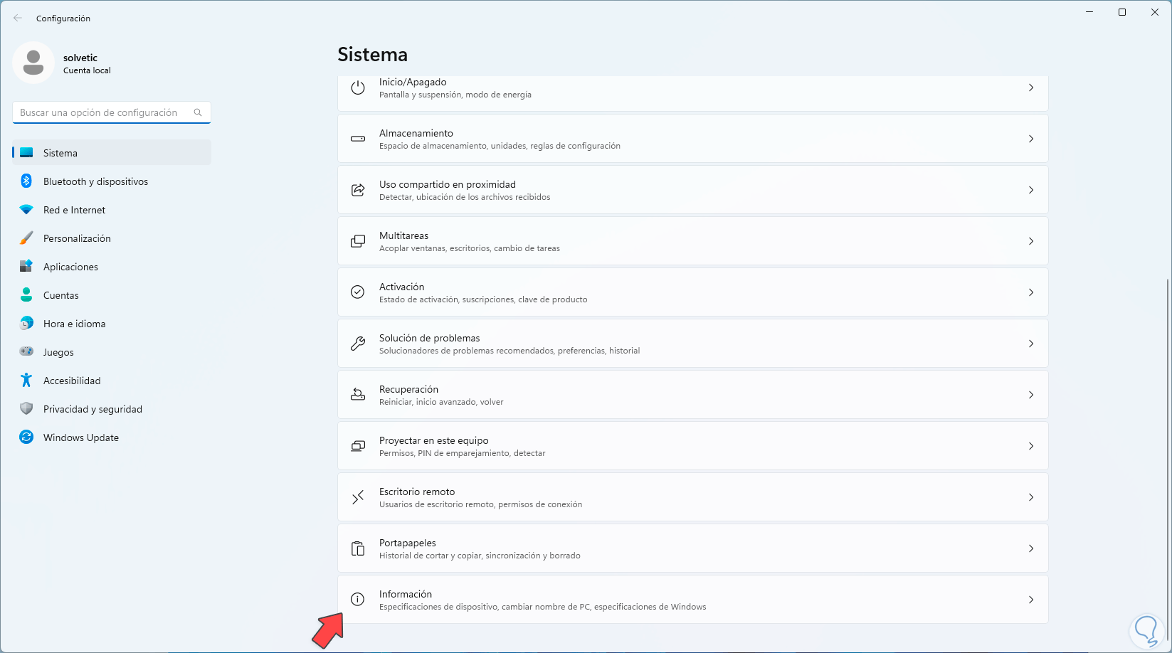 Nuestro primer solución es desde Configuración, para usar este método vamos a la ruta “Inicio – Configuración- Información”: