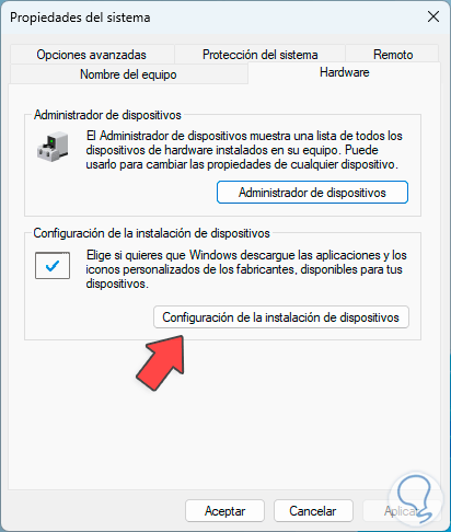 Allí damos clic en “Configuración de la instalación de dispositivos” para que se abra la siguiente ventana: