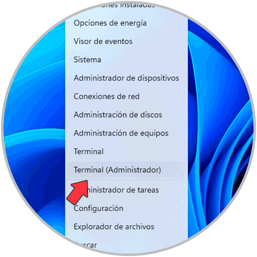 Vamos a dar clic derecho sobre el menú Inicio y allí damos clic en “Terminal (administrador)”:
