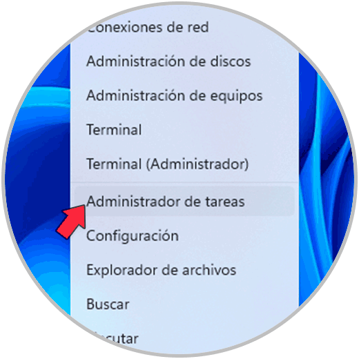 Abrimos el Administrador de tareas desde el menú Inicio: