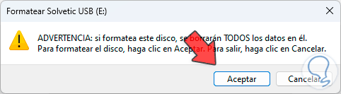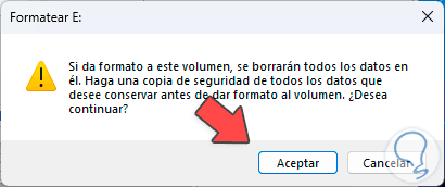 Es posible ajustar los valores necesarios y luego damos clic en “Aceptar”, ahora debemos confirmar este proceso para aplicar el formato al disco duro: